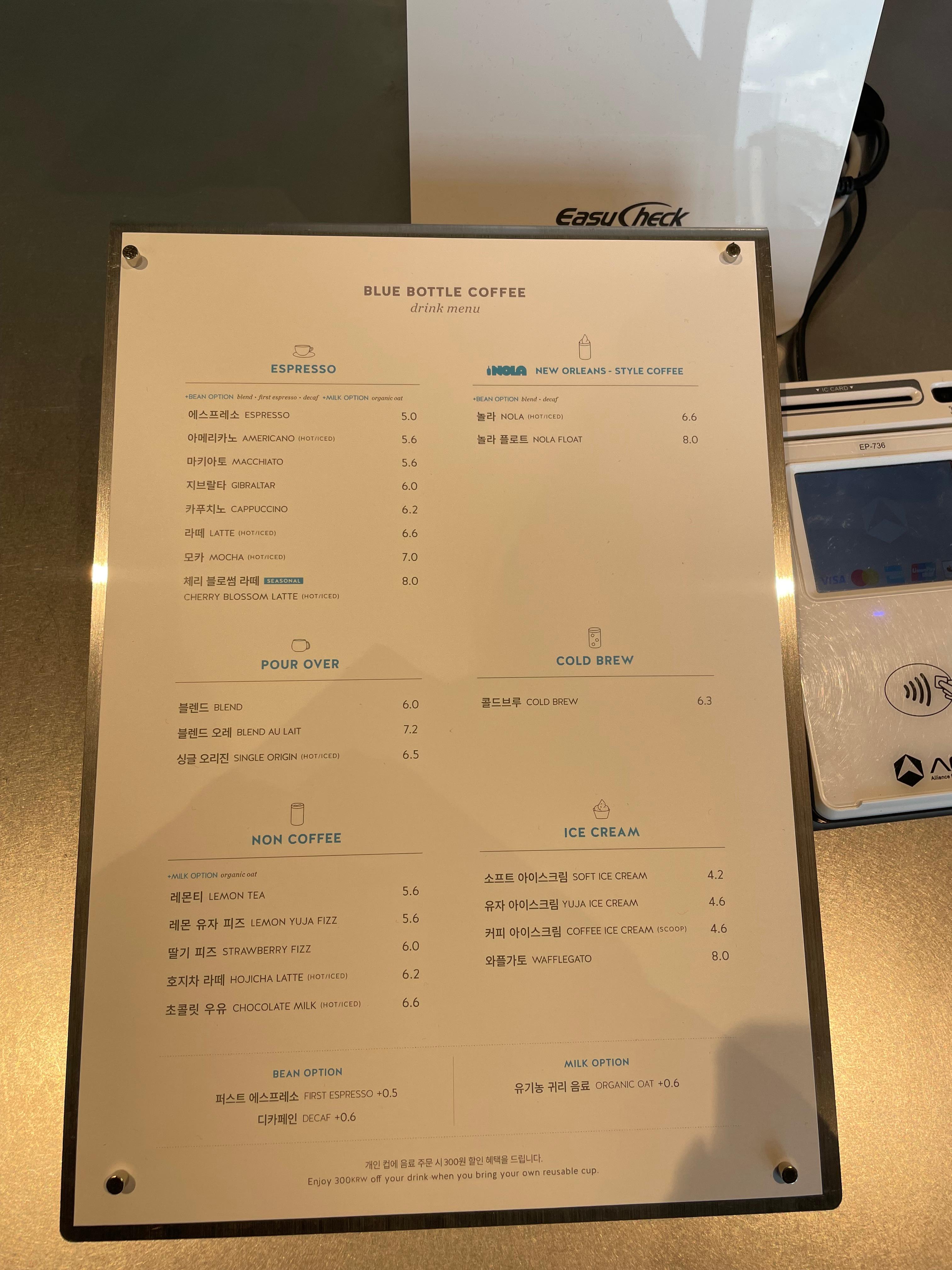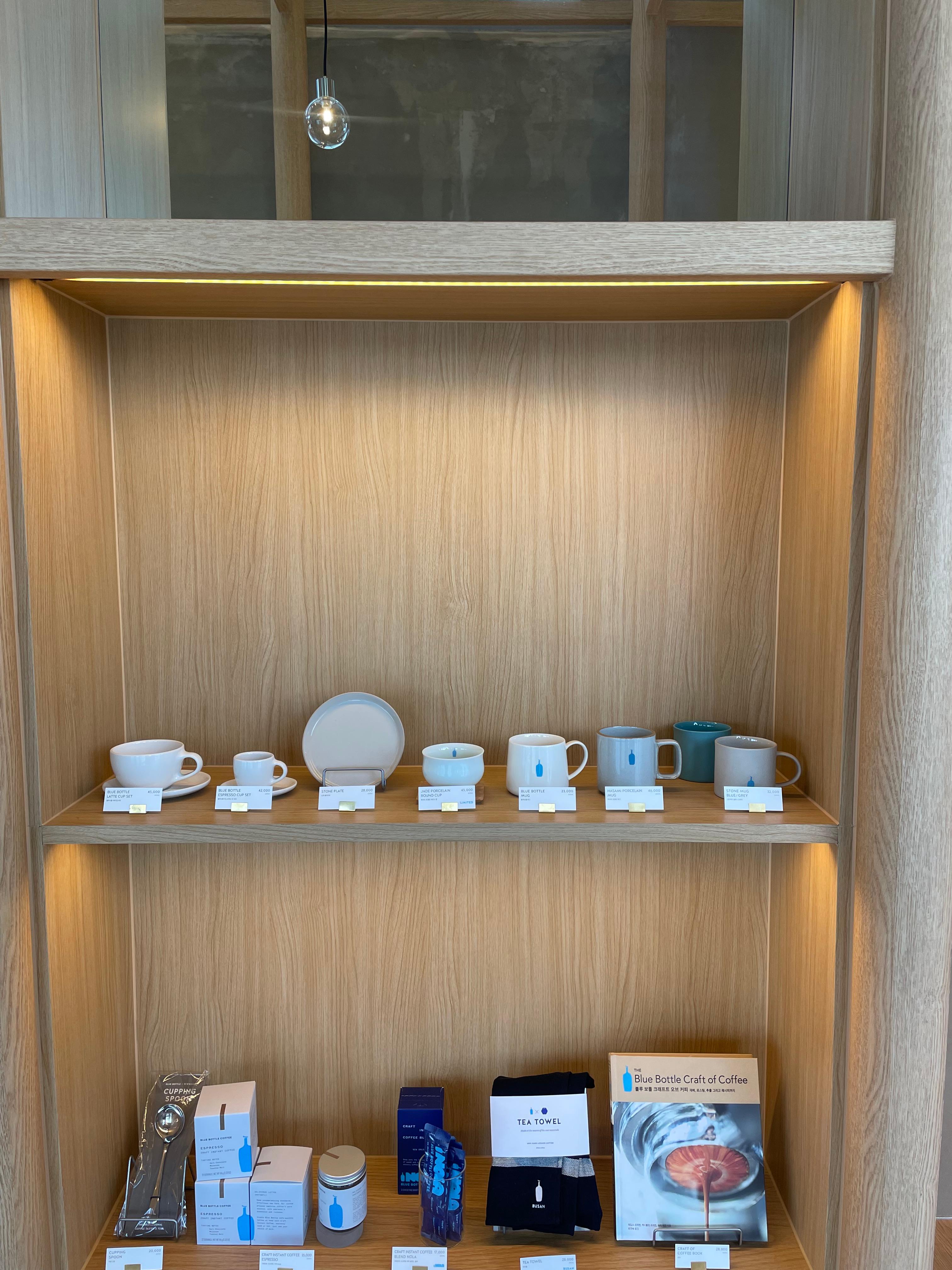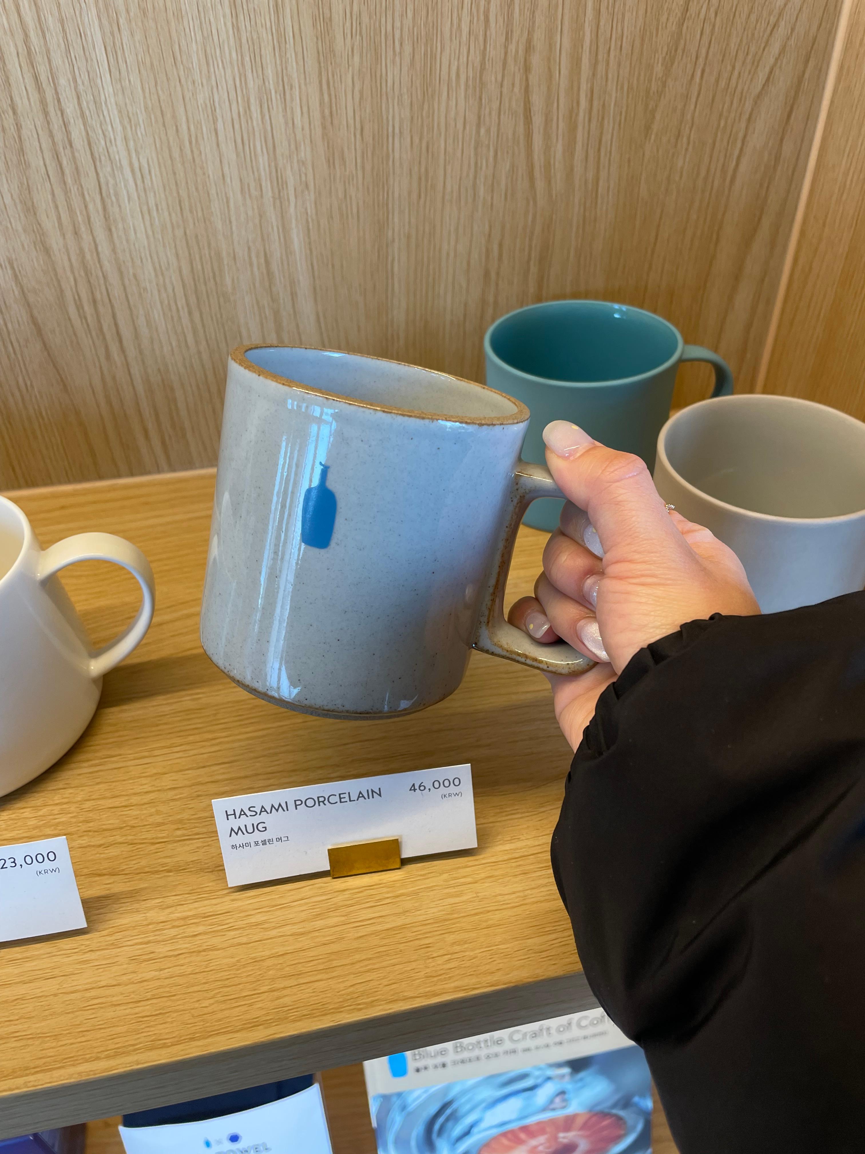 저는, 도자기로 된 컵에 블루보틀 로고가 있는 컵이 맘에 들었어요💙