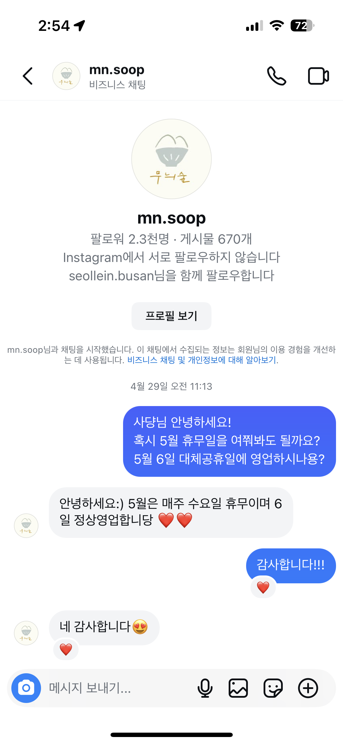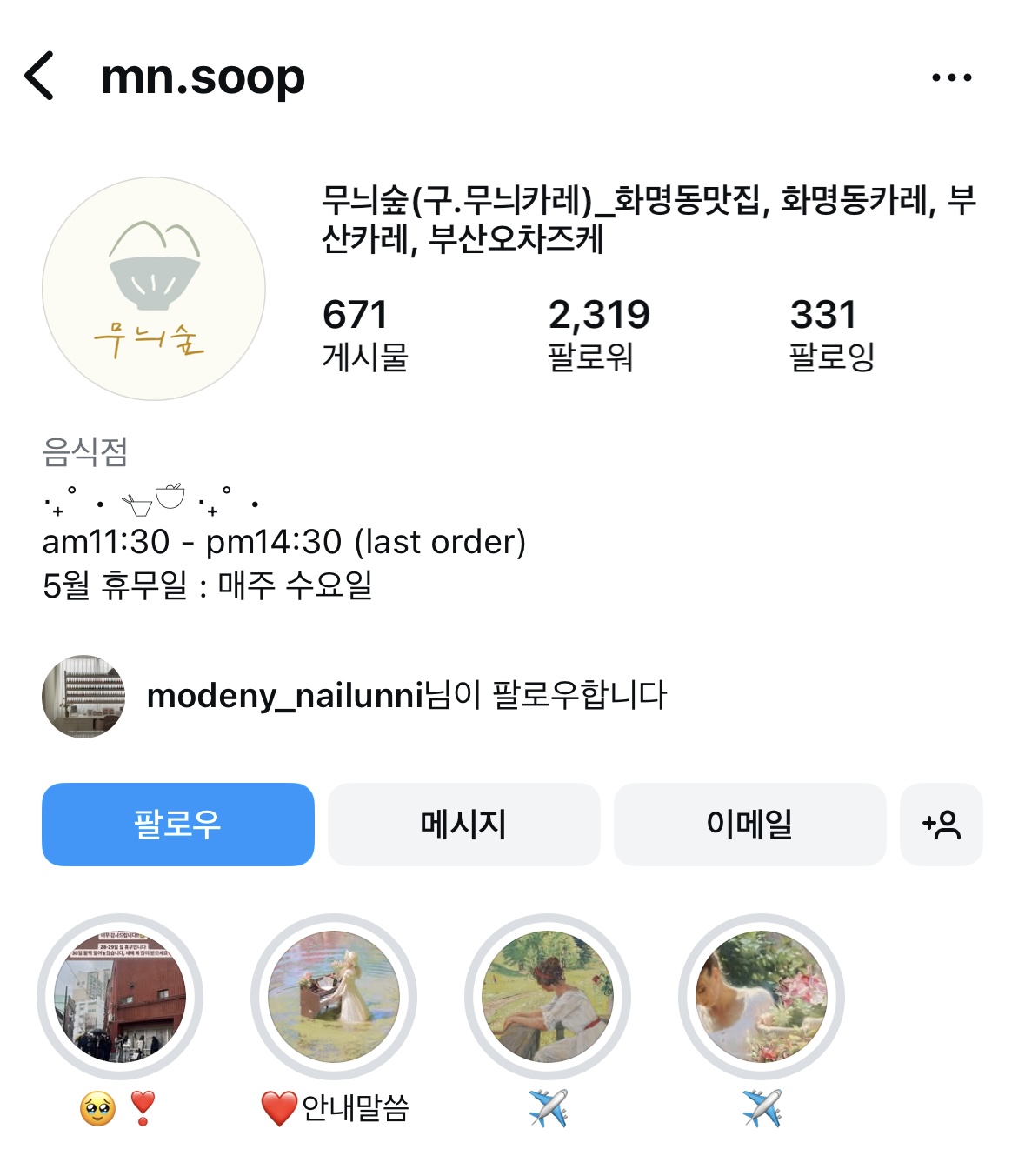 📆 휴무일은 인스타그램 필수 확인!