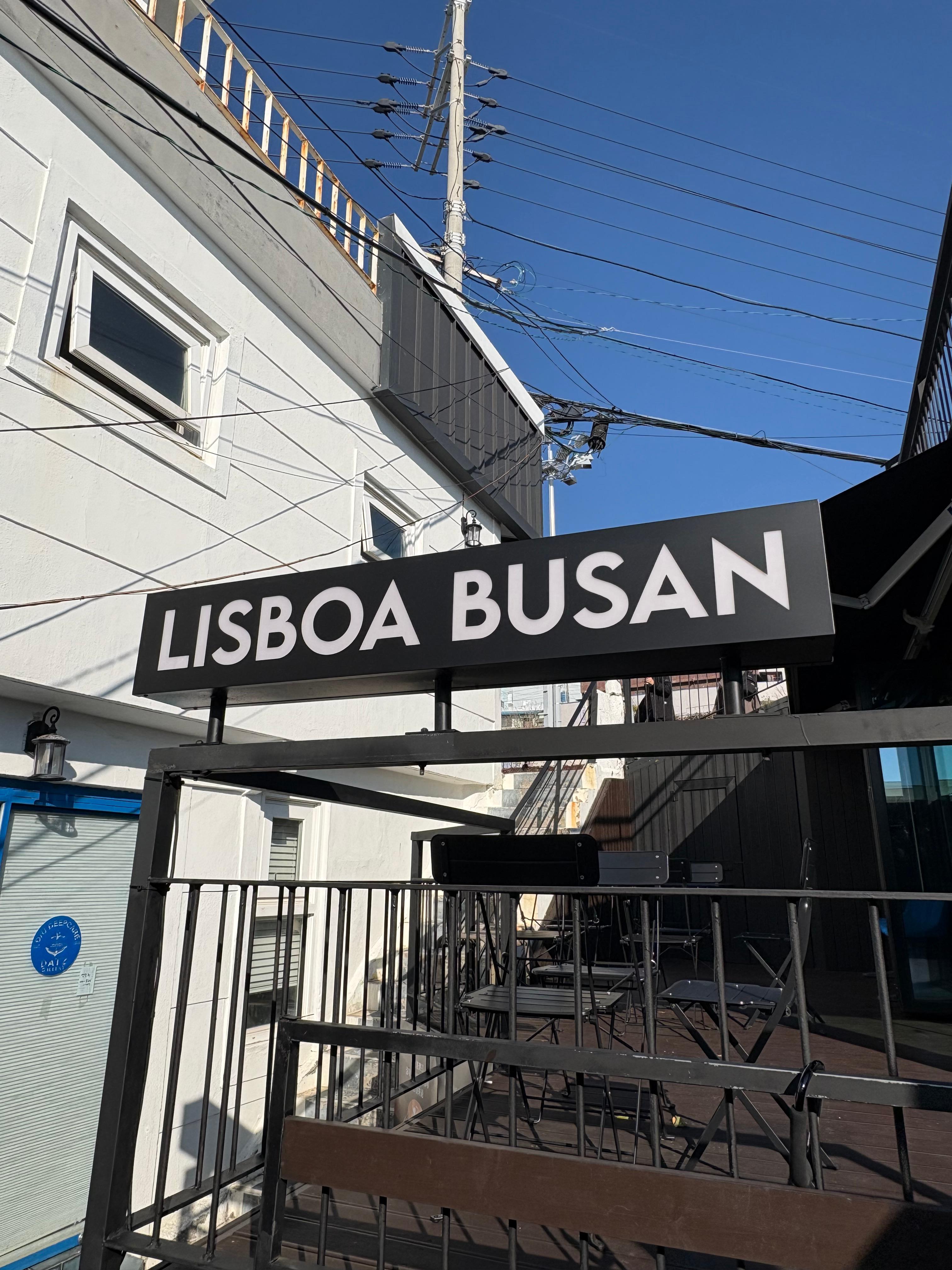 입구에 크게 걸린 LISBOA BUSAN 간판이 먼저 반겨줬어요!